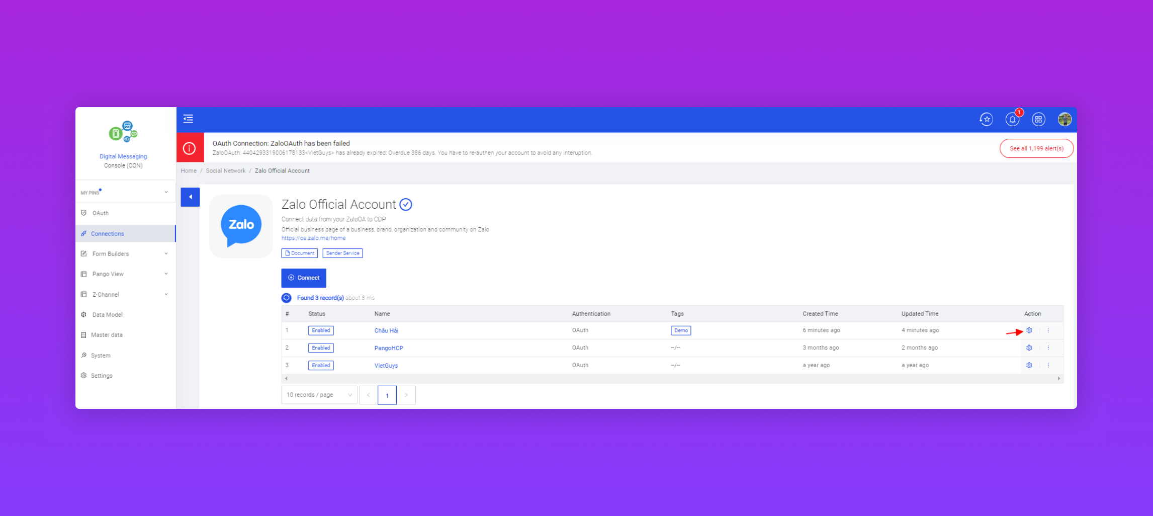 Bước 3: Sync dữ liệu từ Zalo OA vào PangoCDP