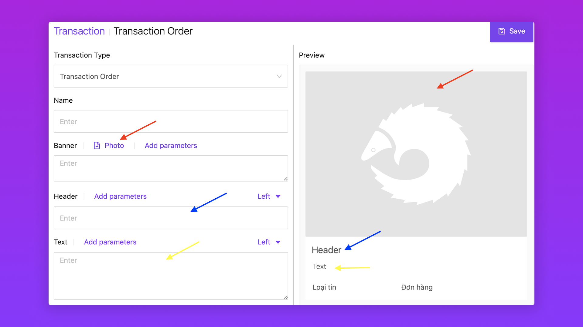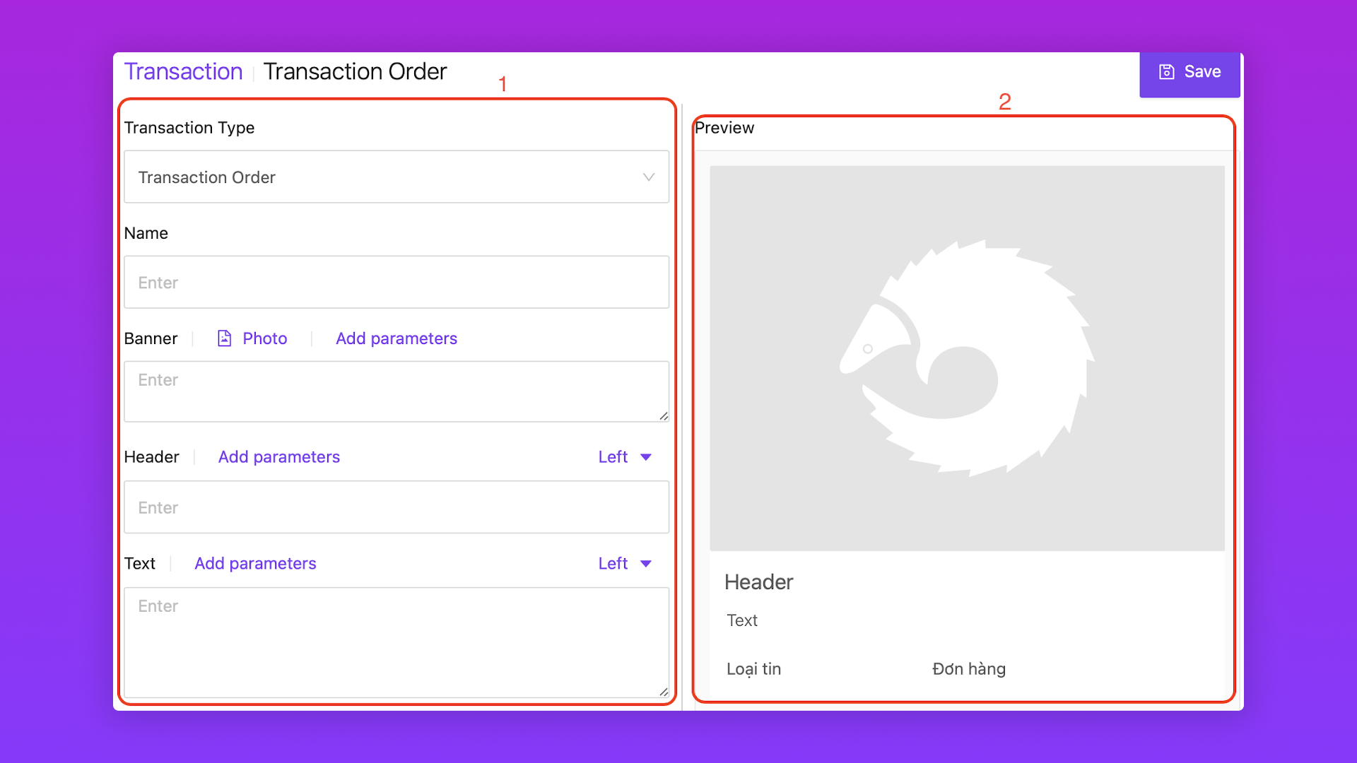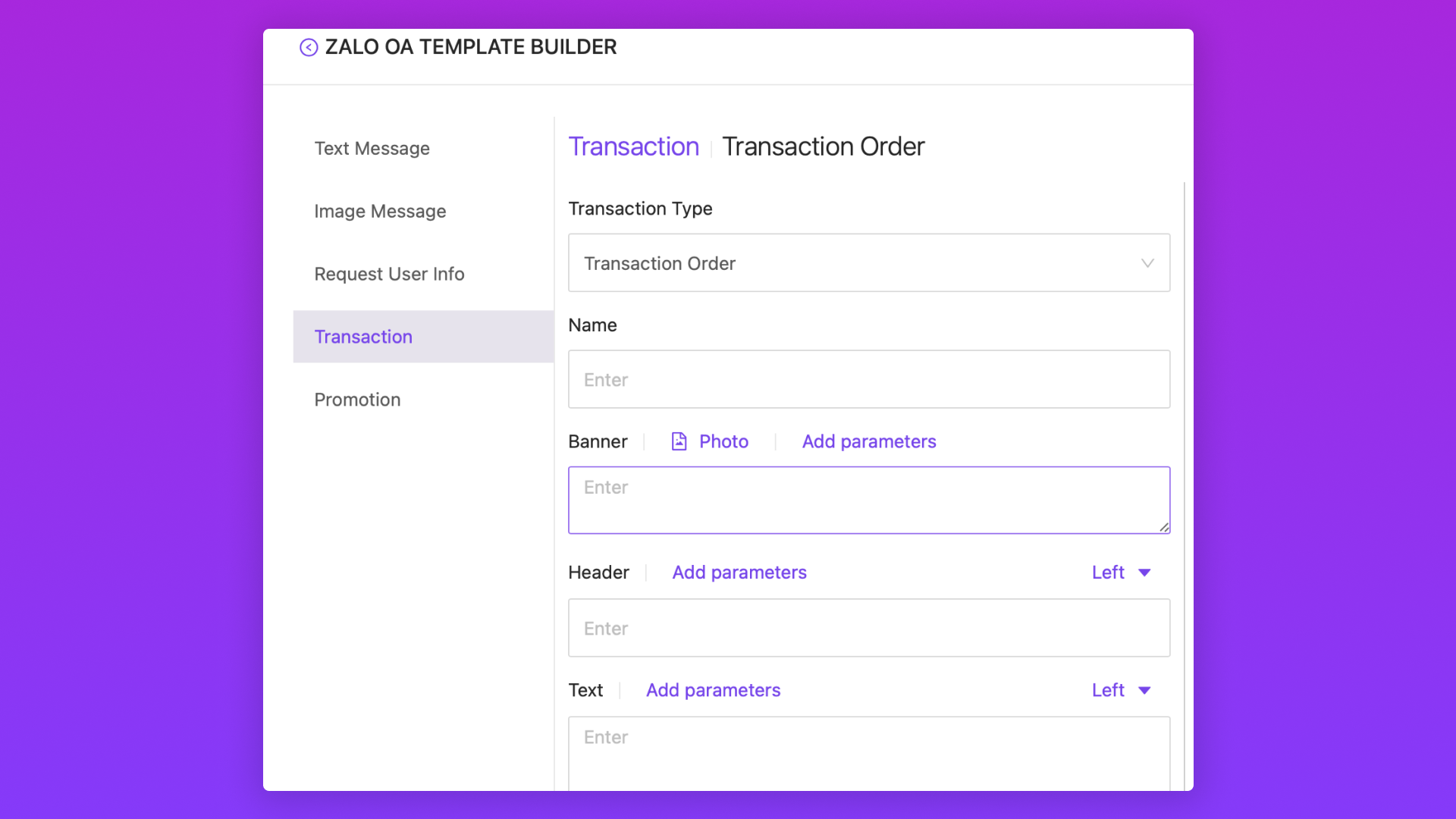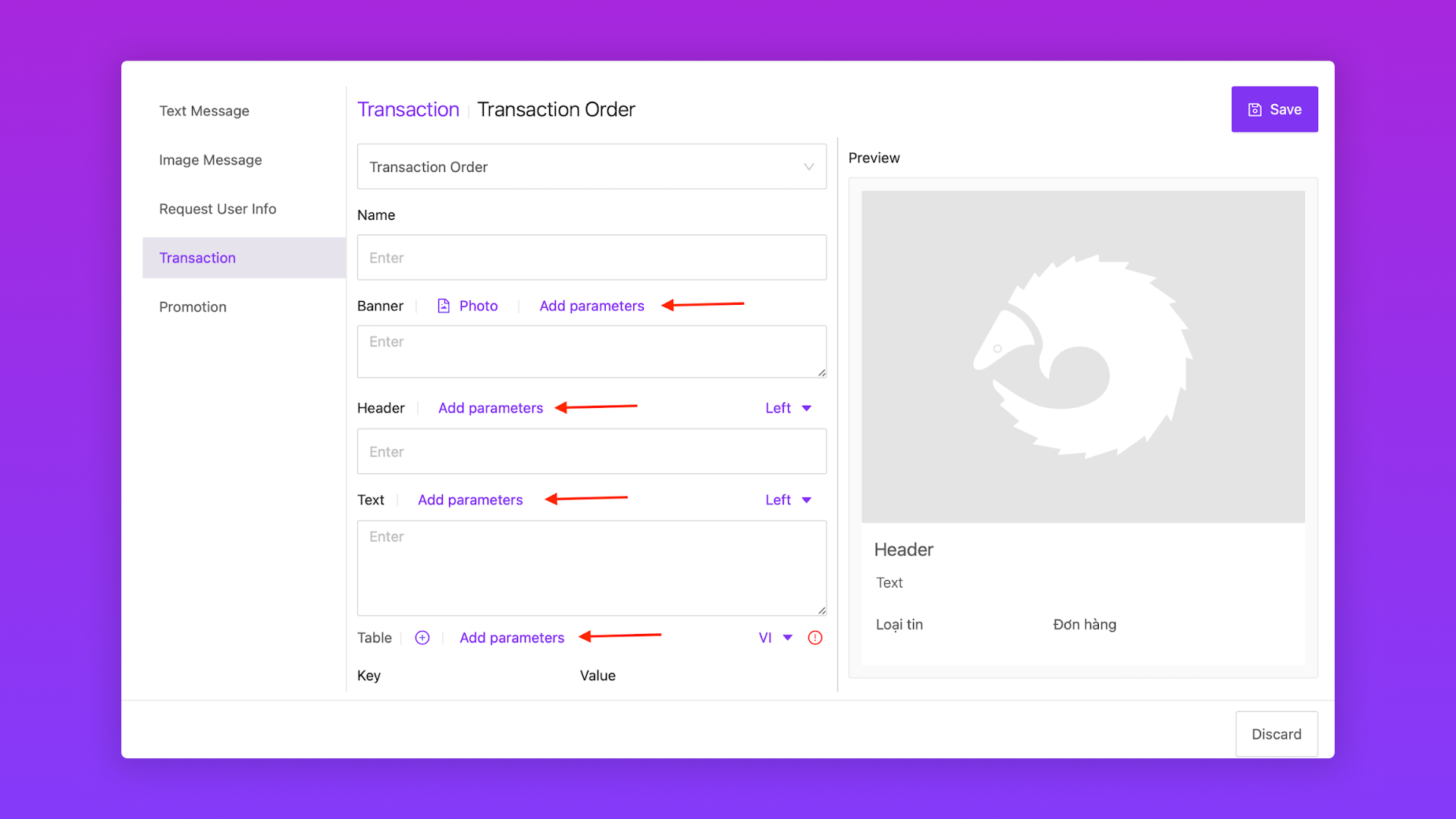 Bước 2: Thiết lập nội dung tin nhắn trên Template