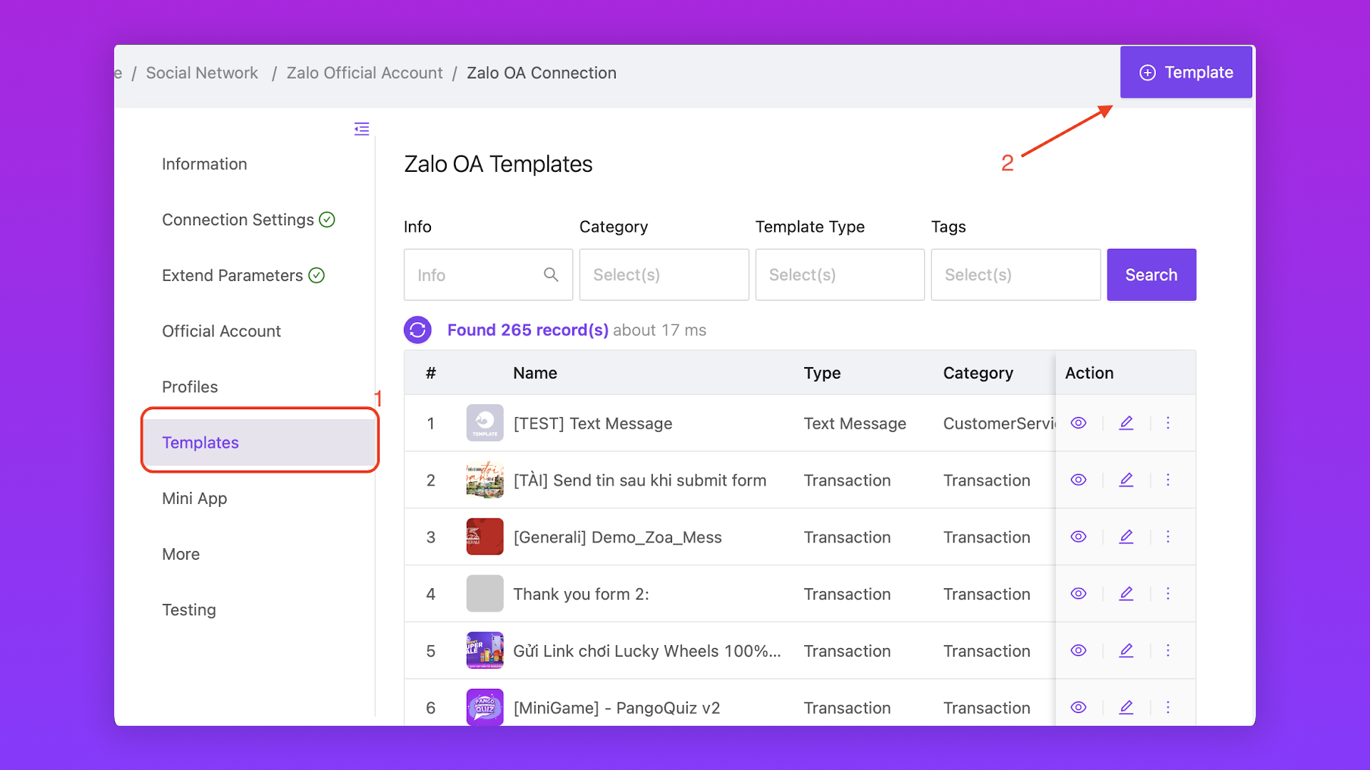 Tài liệu hướng dẫn thao tác tạo Template Zalo UID và truyền tham số Parameter vào template trên PangoCDP