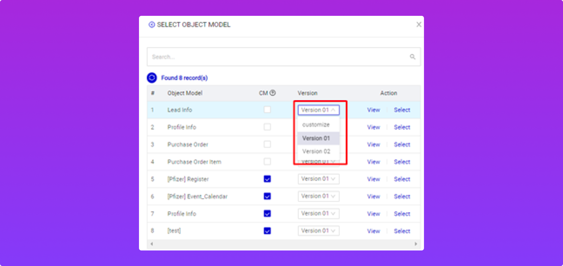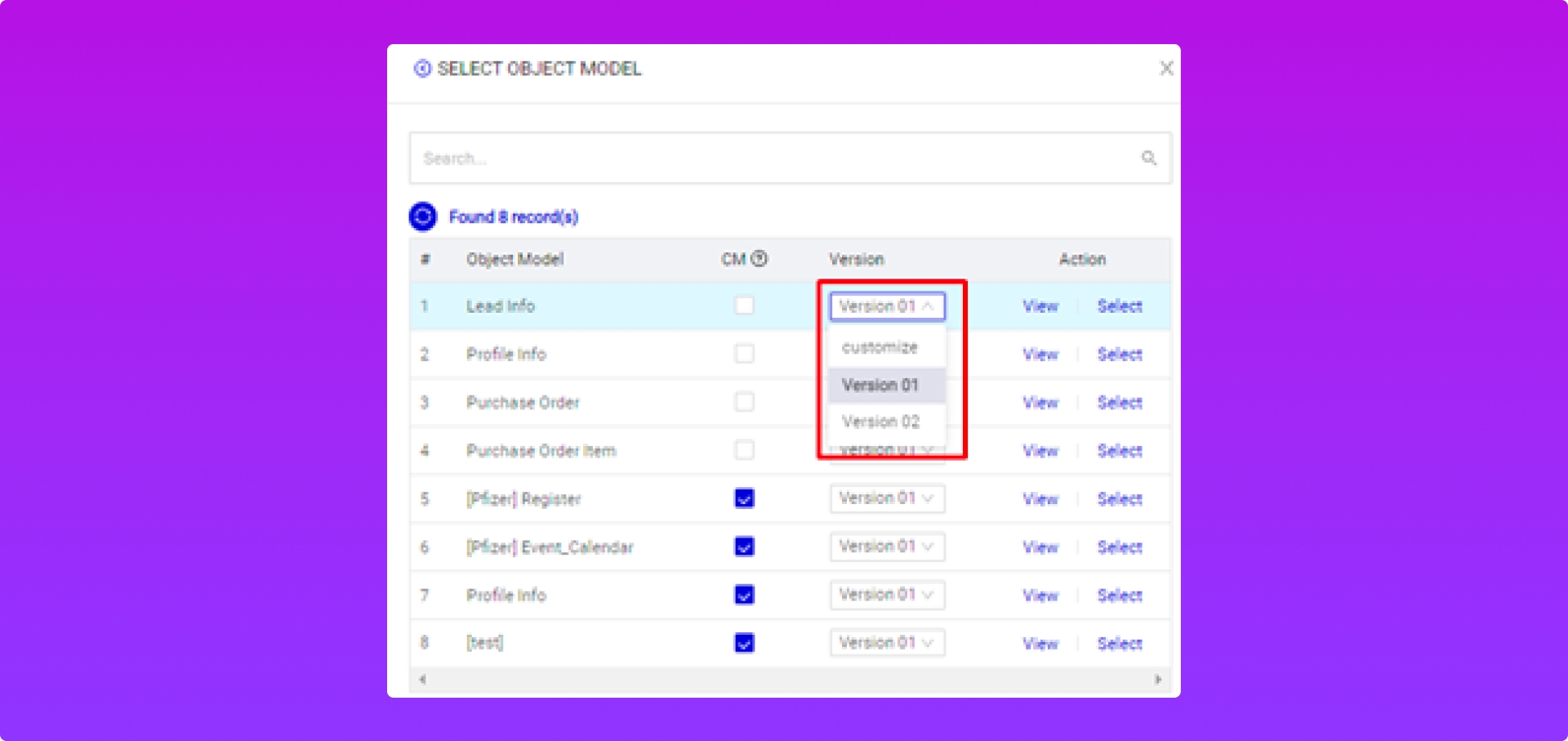 Cột bên trái: Model Data Custom trên PangoCDP