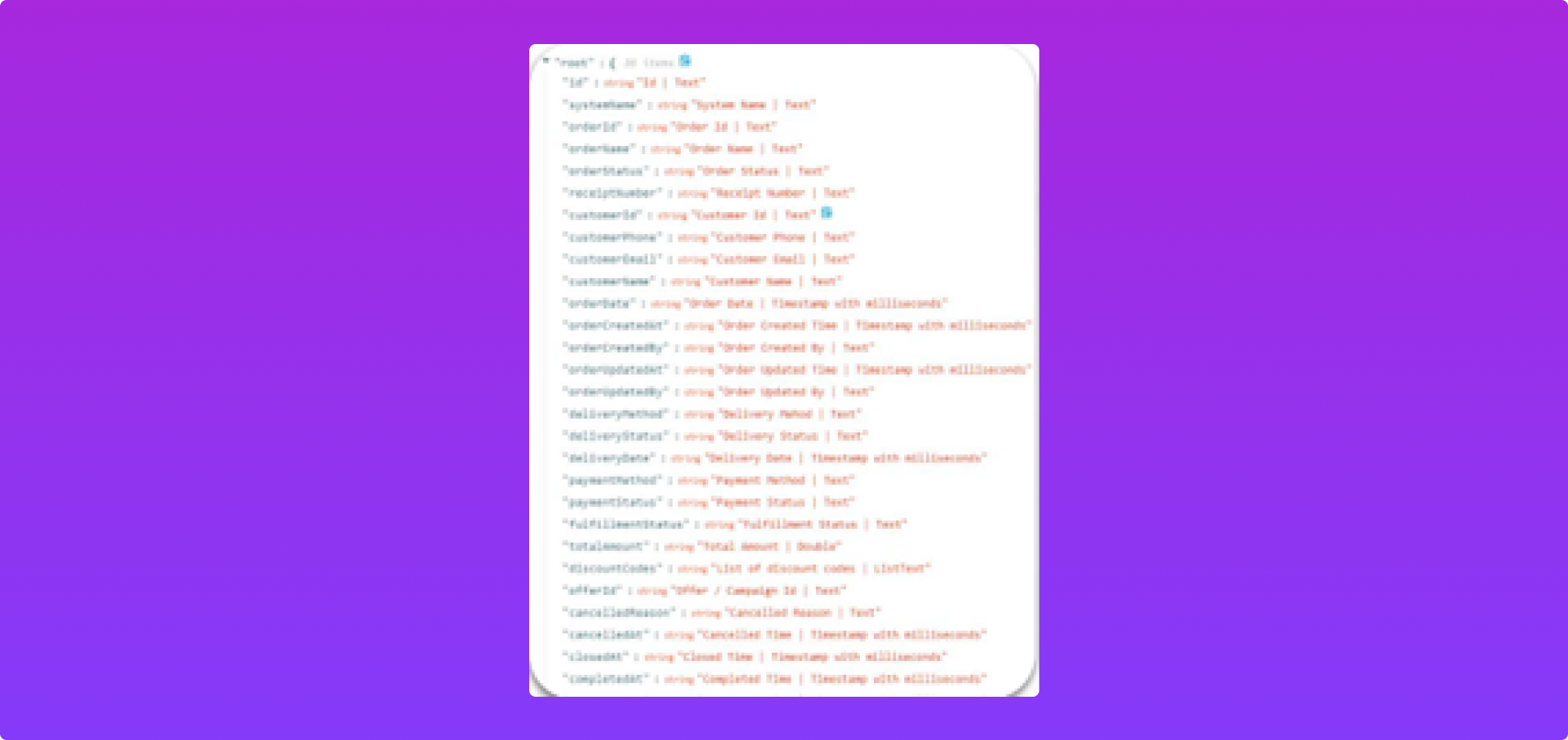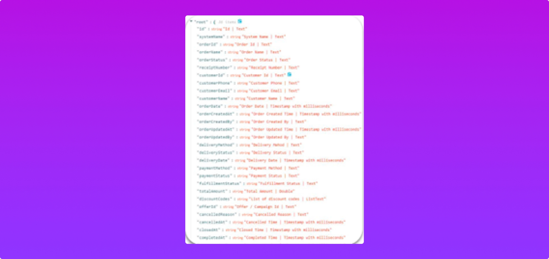 Các trường dữ liệu được Push sang phía khách hàng.
