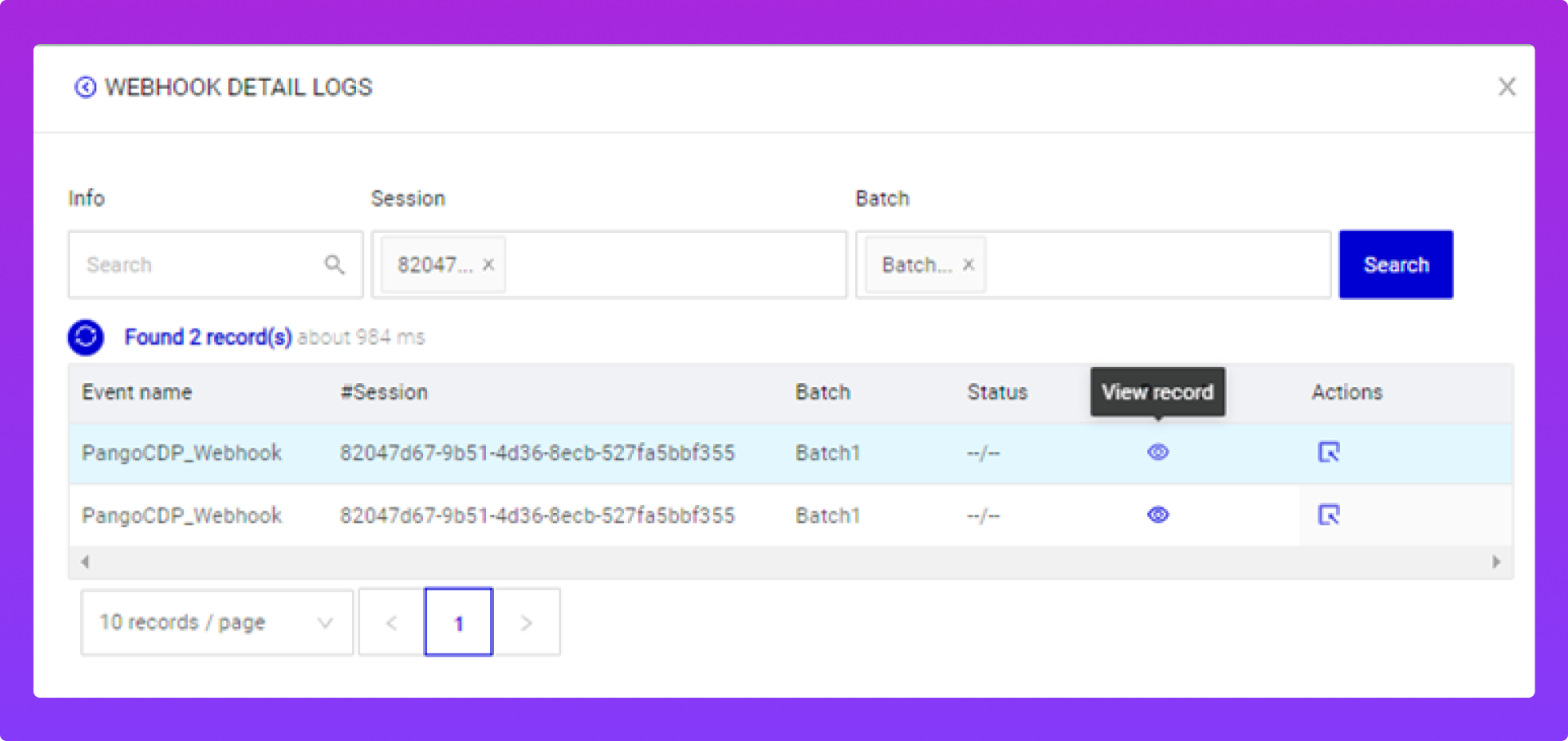 Số lượng records được push qua webhook.