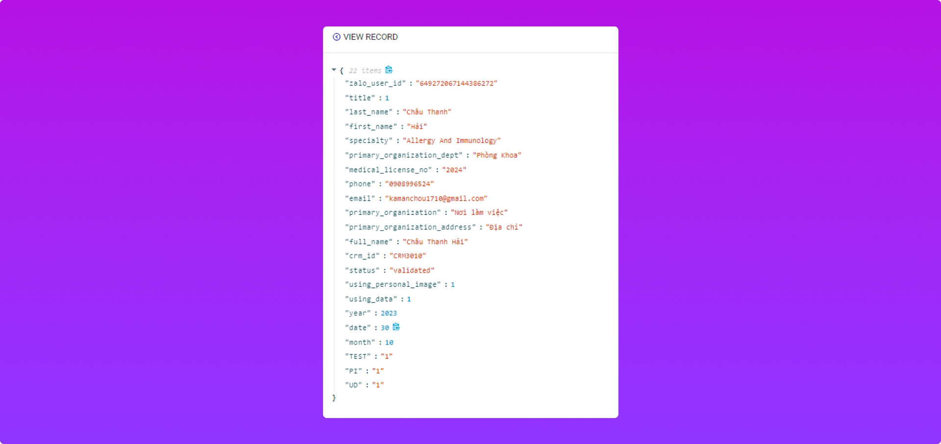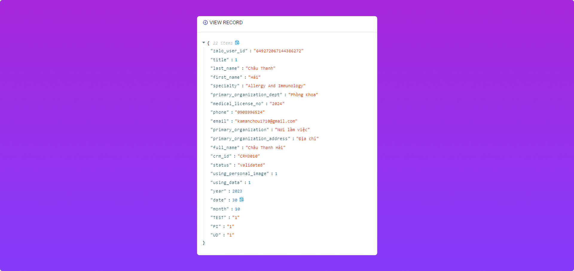 Cột bên phải: Dữ liệu data phía hệ thống bên khách hàng tạo để Push / Get data với PangoCDP