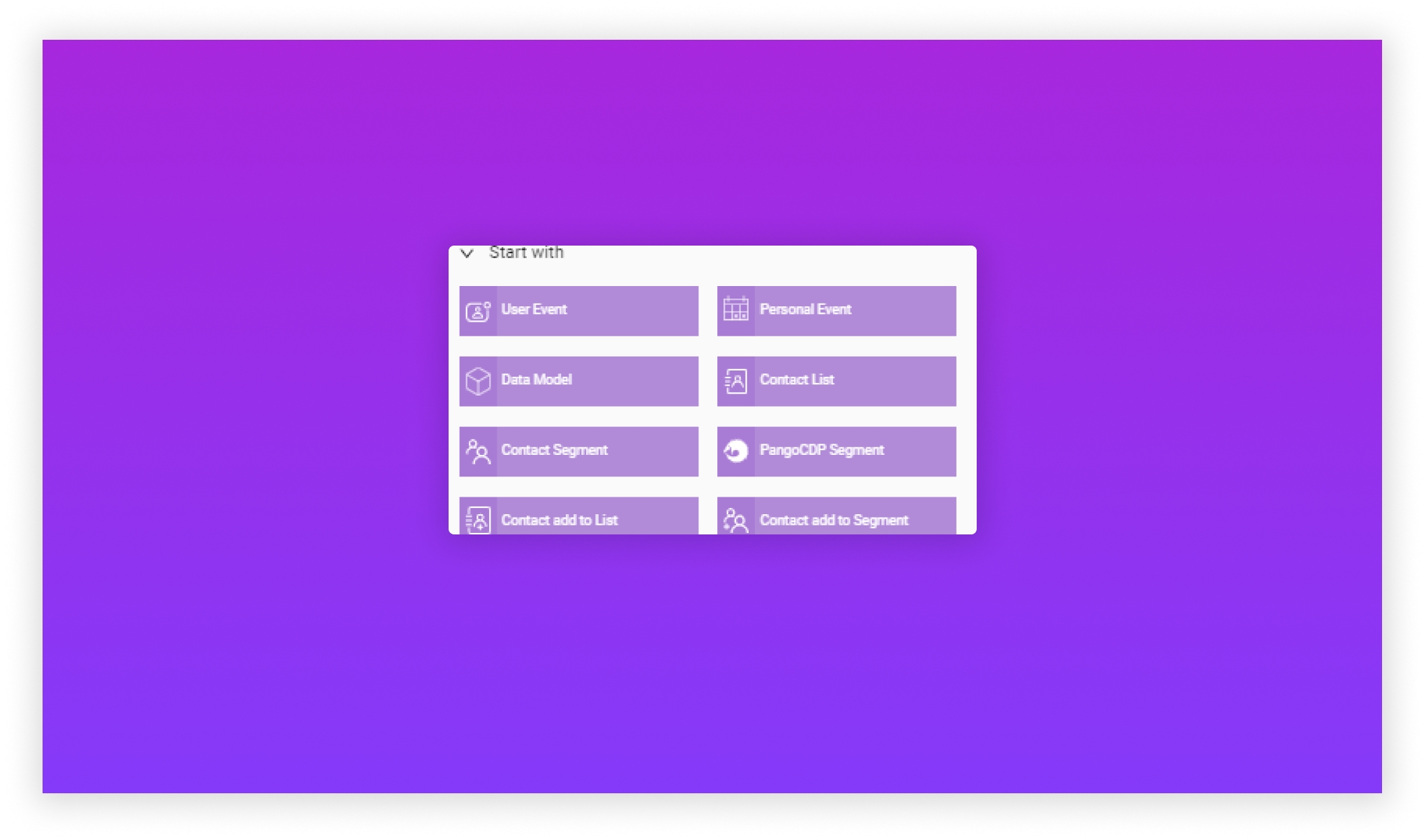 Start flow từ 1 tệp dữ liệu Segment trên PangoCDP. Segment này có thể từ nhiều nguồn dữ liệu Model khác nhau