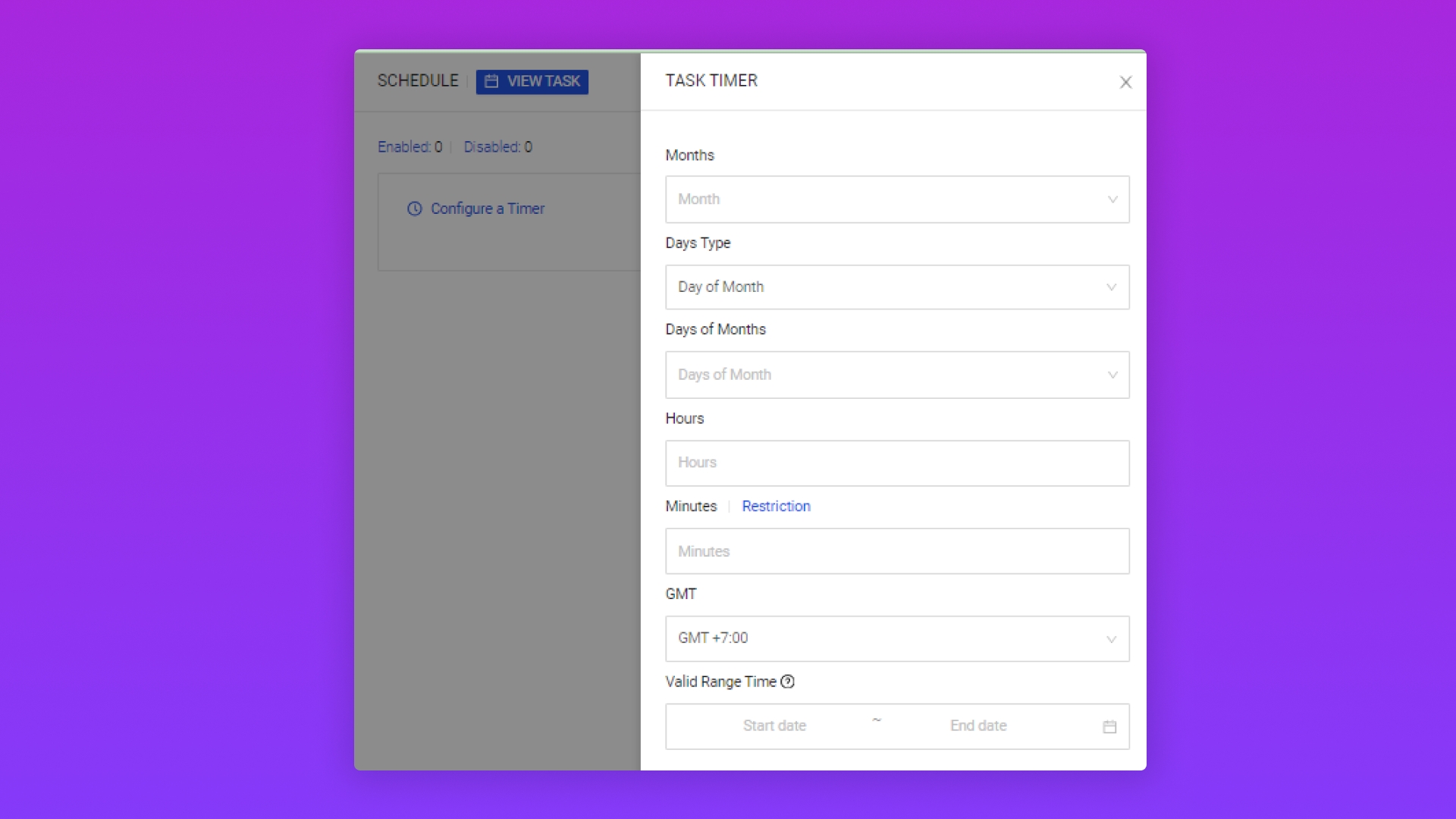 Chọn Schedule / Configure a timer