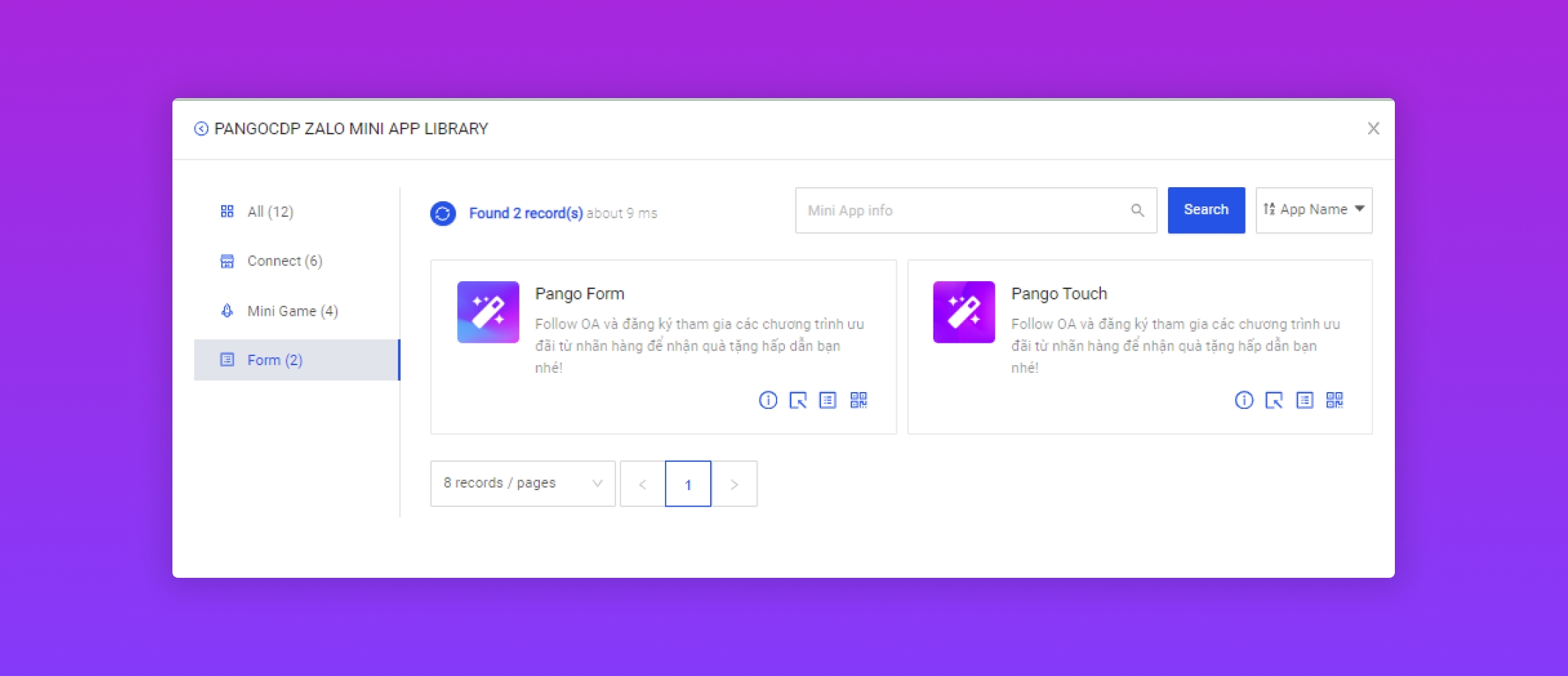 Chọn Zalo Mini App