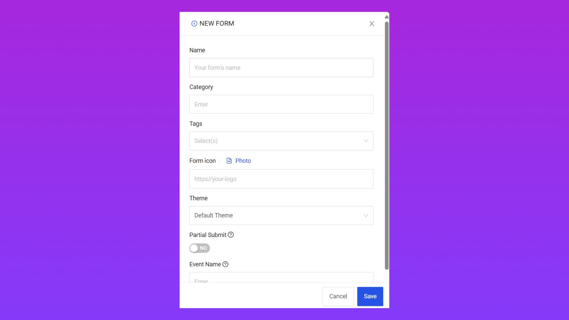 Đặt tên cho event được sinh ra khi Bật tính năng Partial Submit