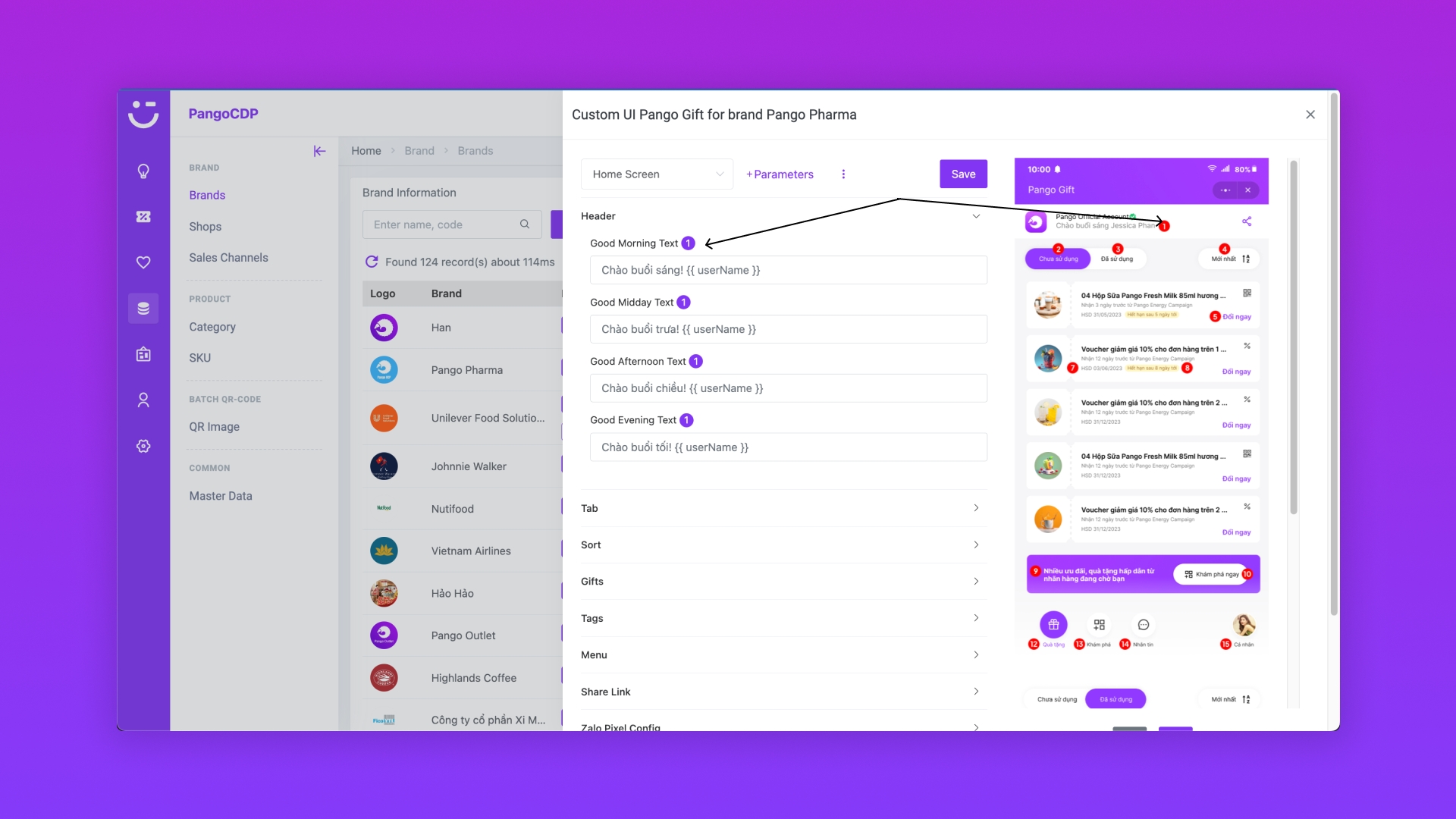 Truy cập Brand để lấy Brand code khi khởi tạo ZMA mới cho Pango Gift