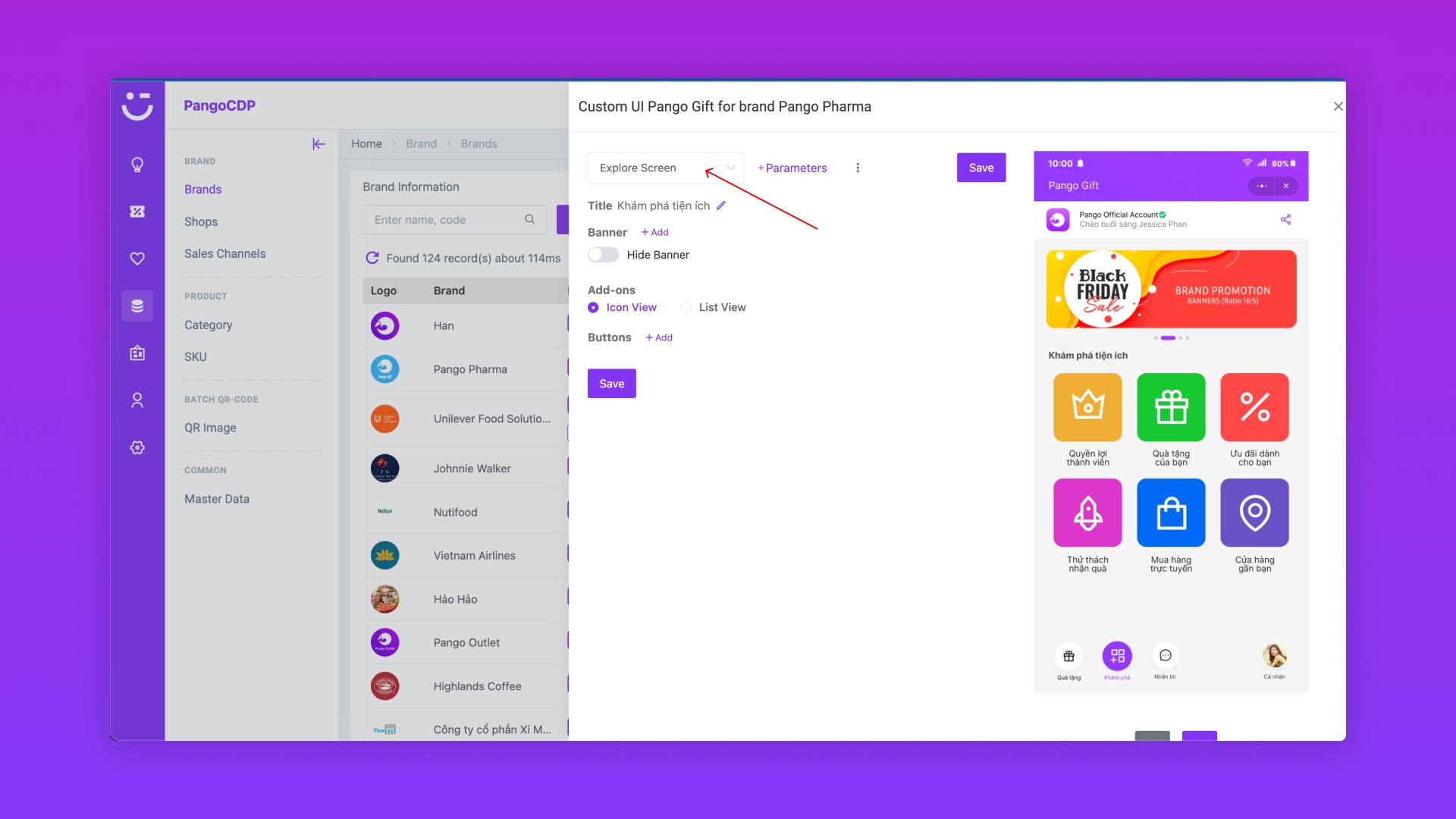 Bước 2. Custom UI Pango Gift trên Activation