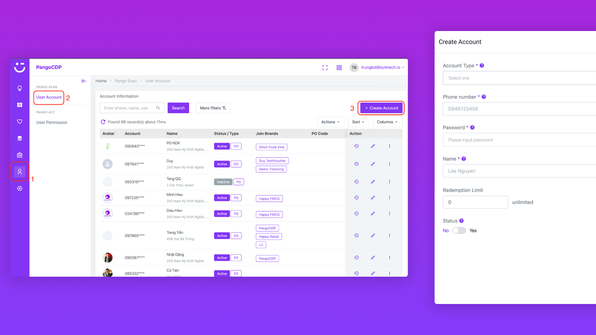 Bước 4: Tạo tài khoản cho người dùng redeem